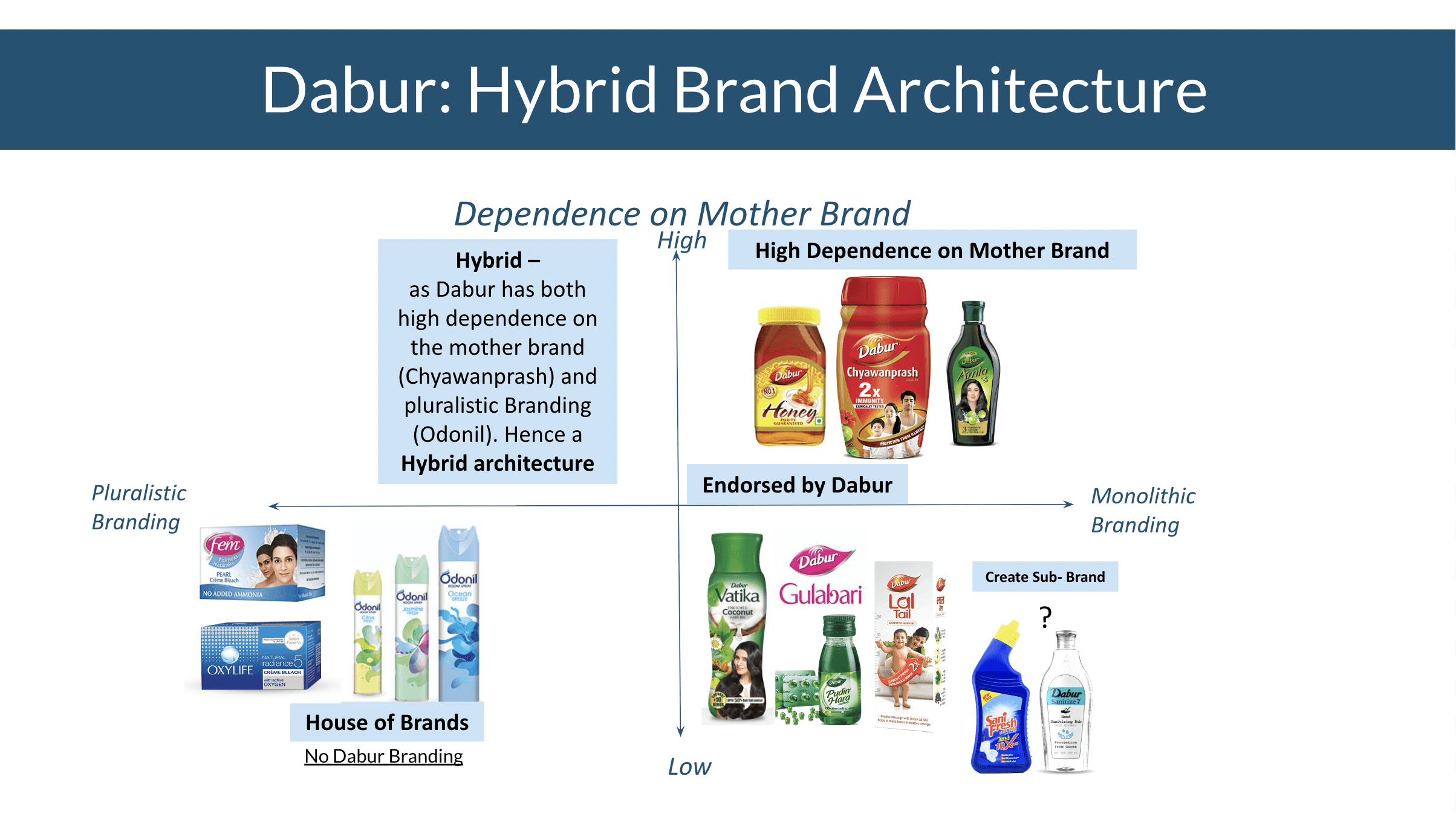 We partnered with Dabur to re-examine its brand architecture across a vast legacy portfolio. With the masterbrand deeply rooted in health and Ayurveda, the core question was whether home-care, cleaning and cosmetic extensions could coexist without diluting equity. We delivered multiple architecture pathways, each with clear pros and cons, along with graphic identity routes to guide future expansion.